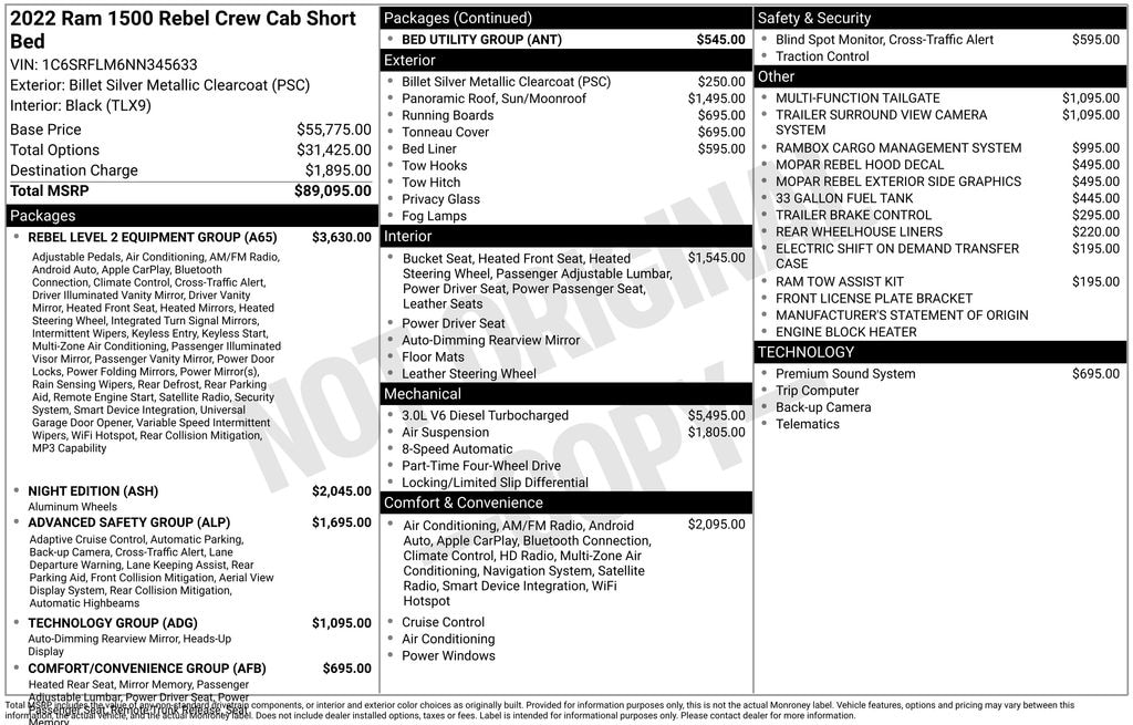 2022 **REBEL**CREW CAB**3.0 DIESEL**SUNROOF**RAMBOX**LEATHER**NIGHT EDITION**LVL 2 EQUIP GROUP**TECH PKG**SPRAY IN LINER**WAS $85190 NEW!!!**21/29 City/Highway MPG